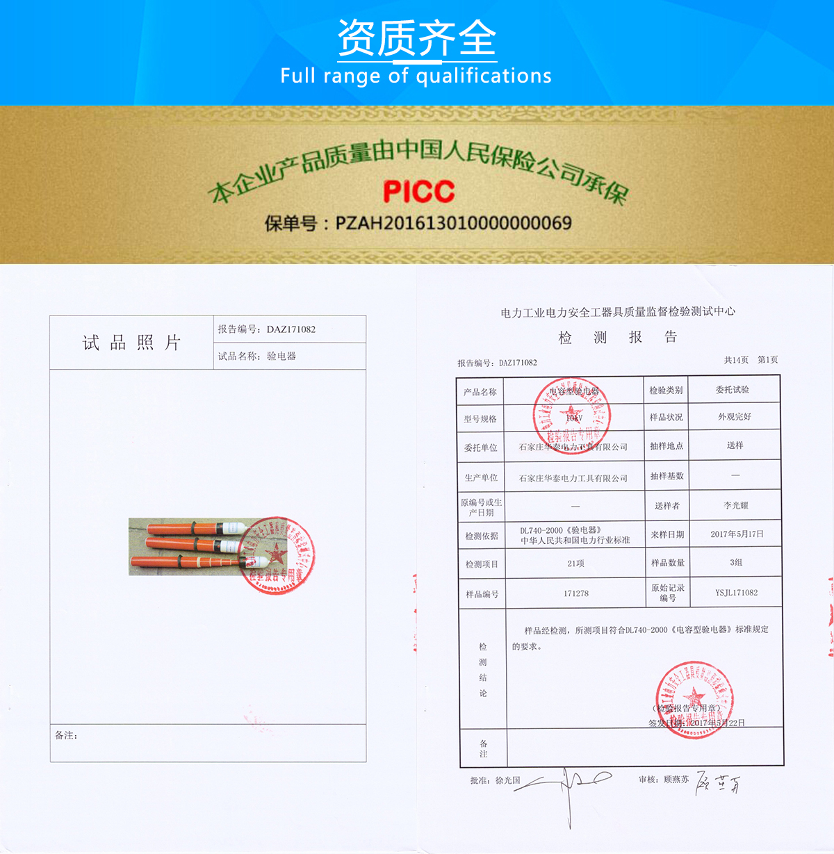 該產(chǎn)品已由PICC承保,請放心使用;本公司資質(zhì)齊全,有檢測報告,支持90天退換,請放心購買。