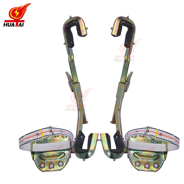 3、正式攀登前應對腳扣作人體沖擊試登,判斷腳扣是否有變形和損傷。登桿前應將腳扣登板的皮帶系牢,登桿過程中應根據桿粗細隨時調整腳扣尺寸。